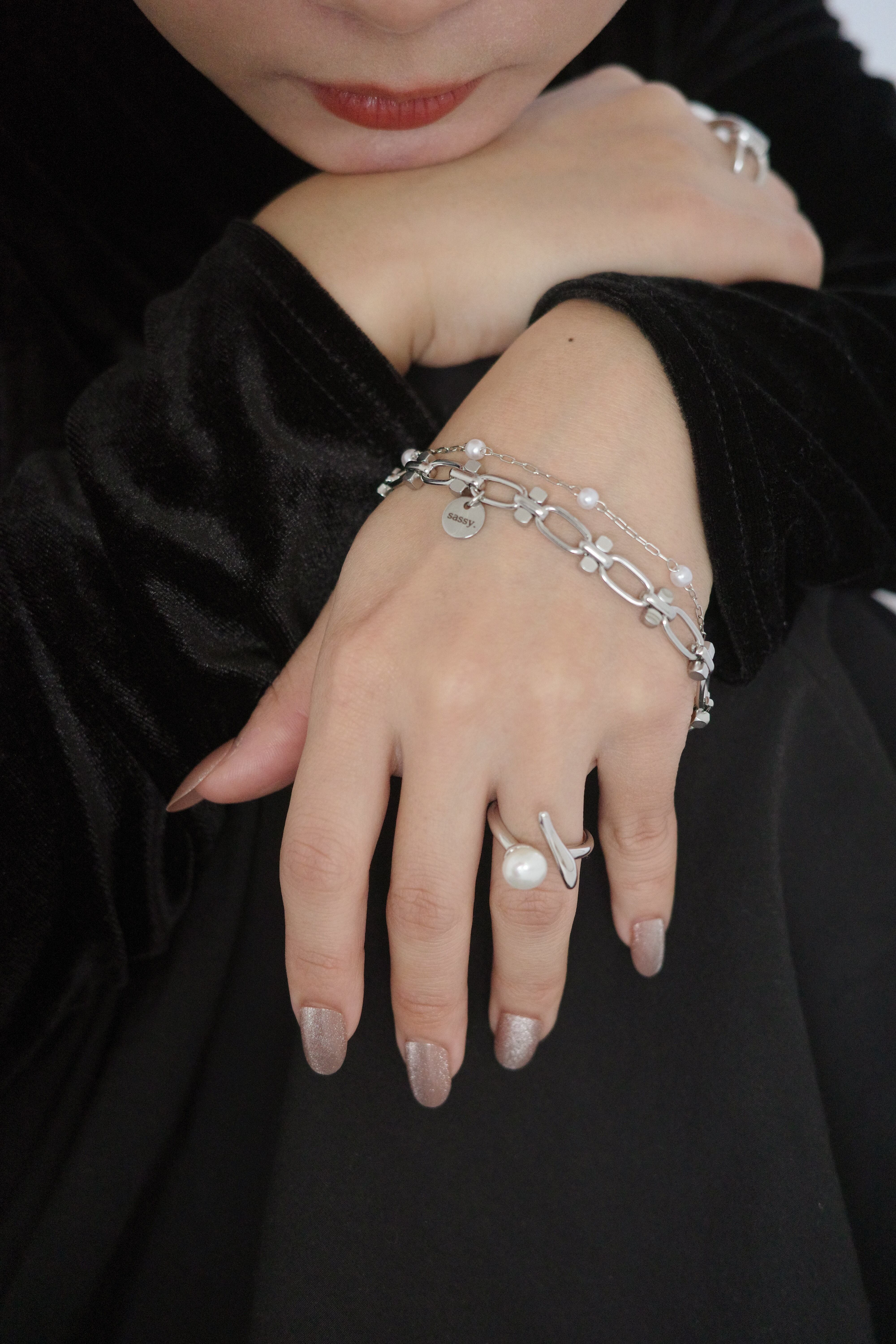 デザイン : パールと曲線のバランスが上品でミニマルなデザイン