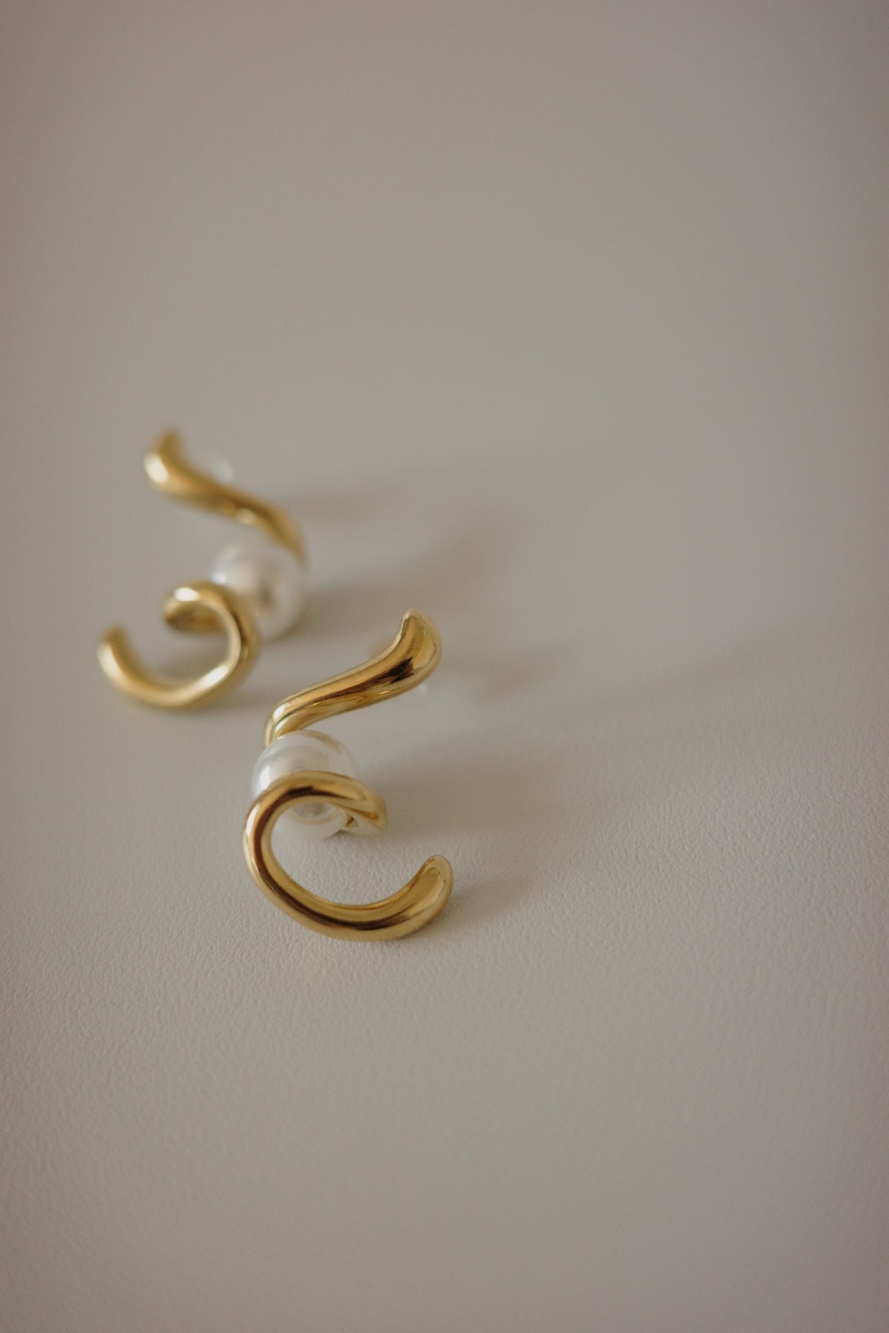 くるんっとした個性的なデザインにパールを施したかわいいデザイン