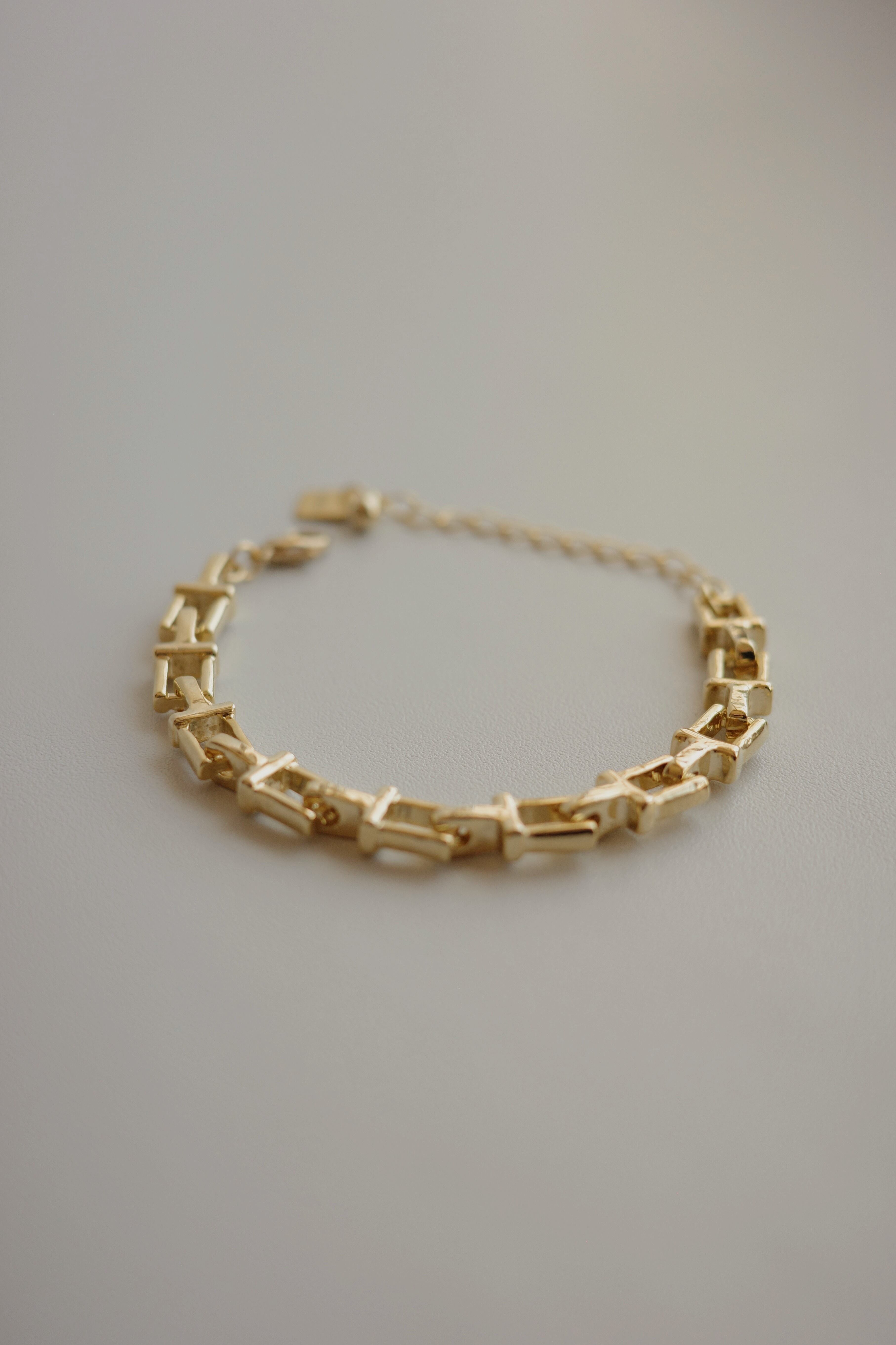 無骨な太めチェーンの存在感のあるシゴールドブレスレット。