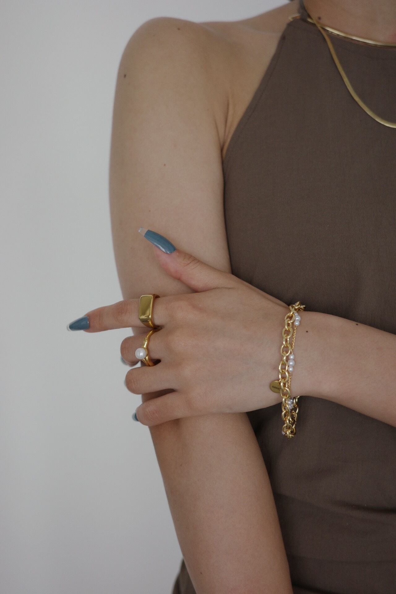 シンプルながら手元にしっかりとしたアクセントを加え、どんなスタイリングにも馴染むデザインです