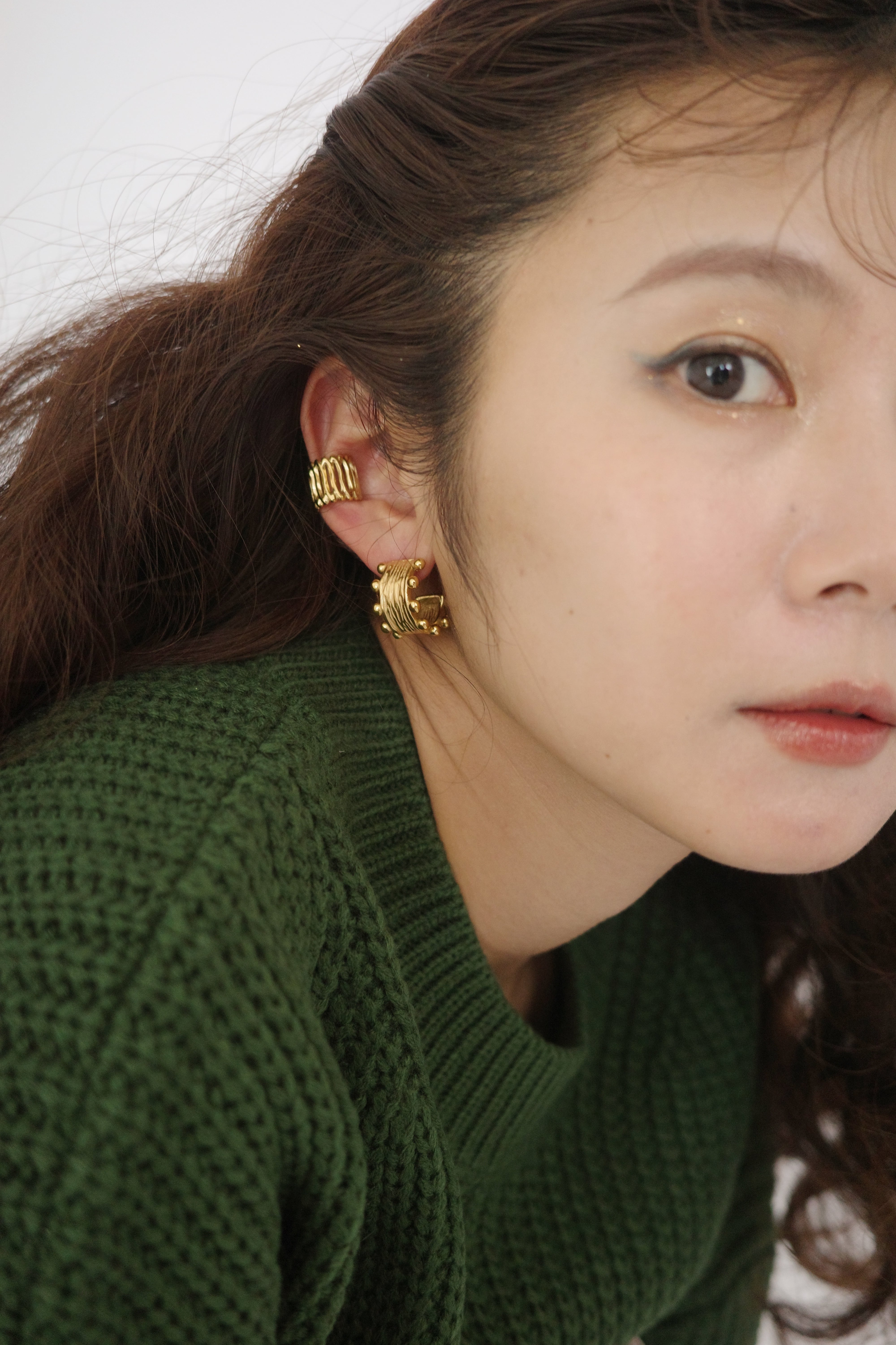 小ぶりながら存在感がしっかりあり、耳元にアートな印象をプラス