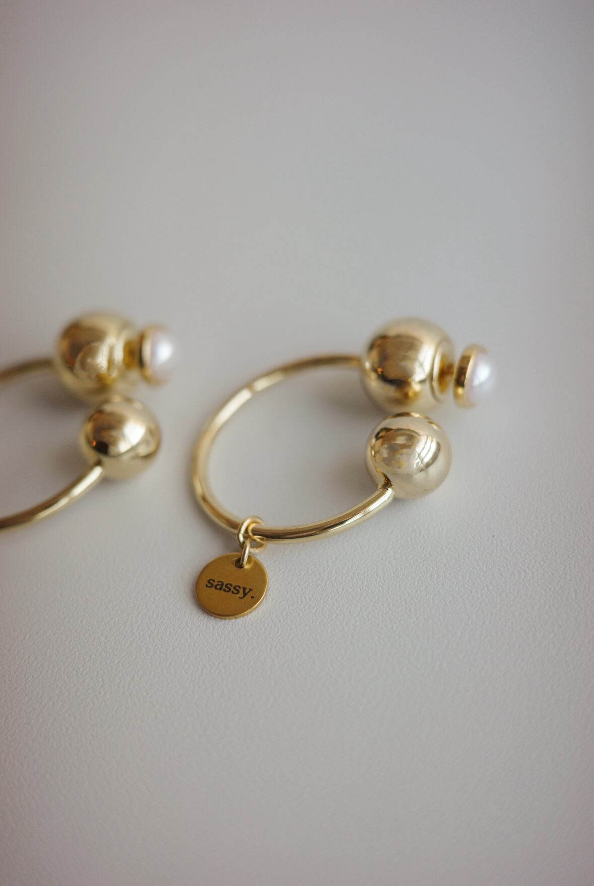 丸みのあるフォルムに大小のメタルボールがアクセント。