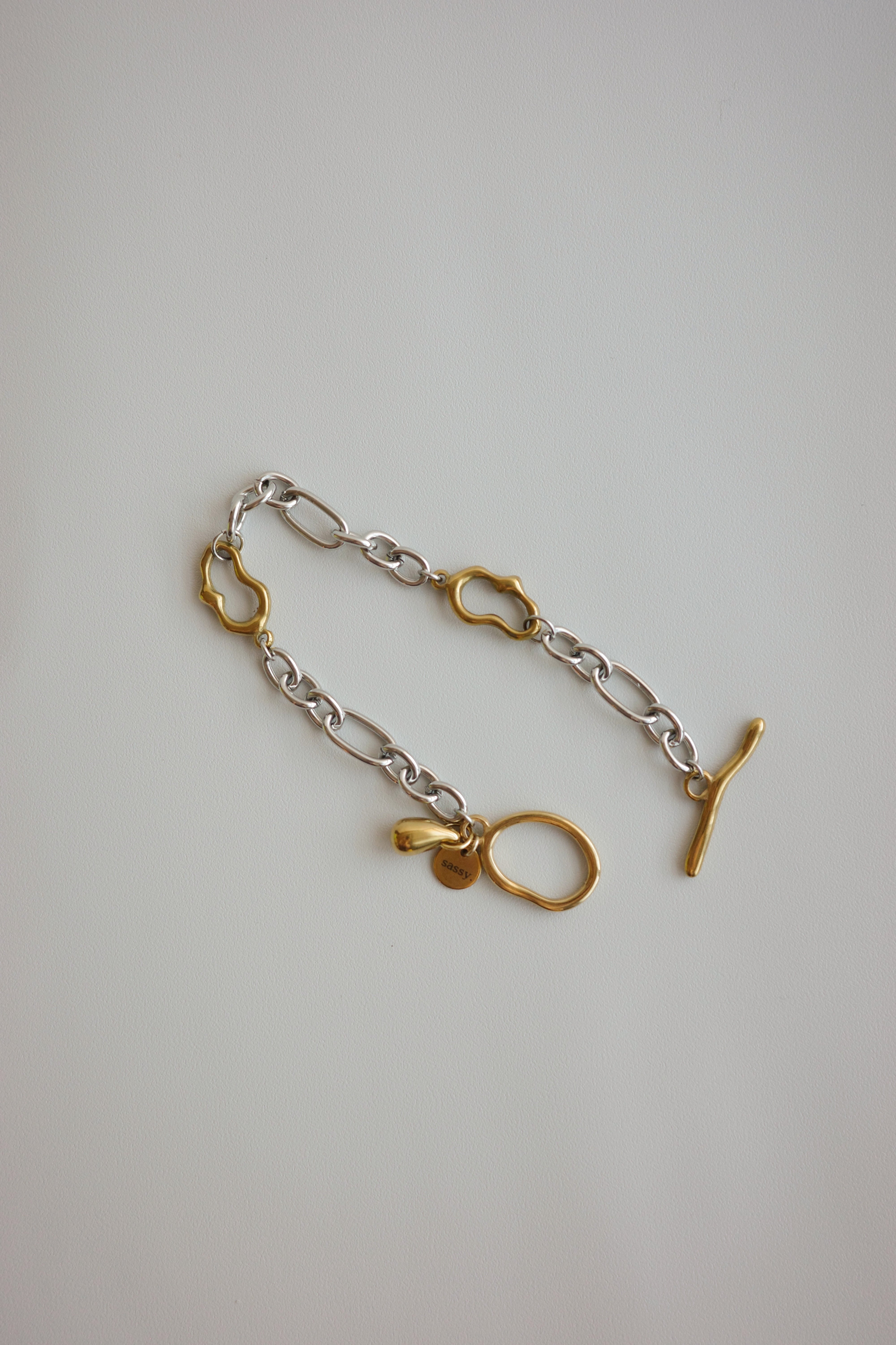 シルバーとゴールド、異なる質感が流れるようにつながるデザイン。