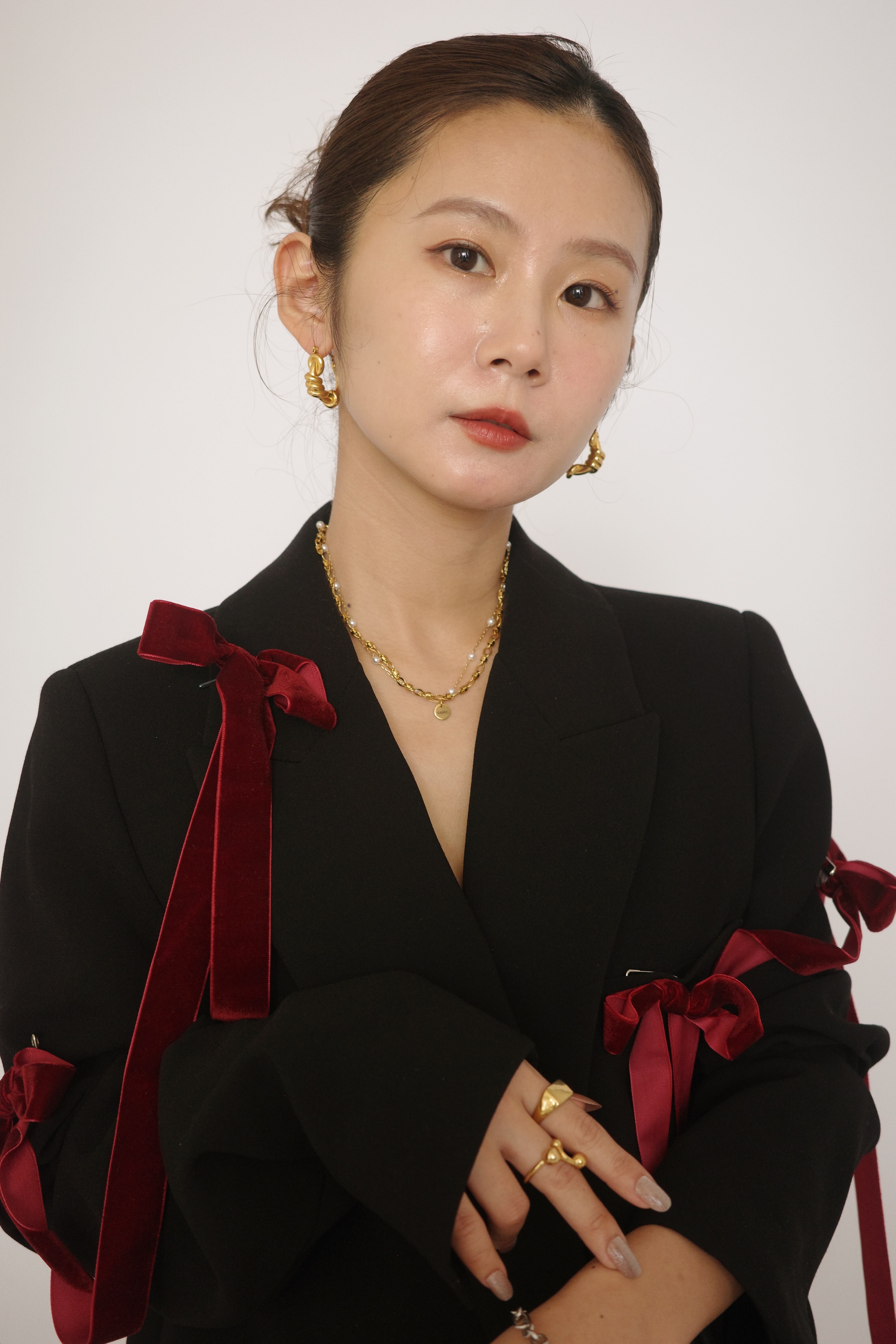 首元にアクセントを加え、どんなスタイリングにも馴染むデザインです