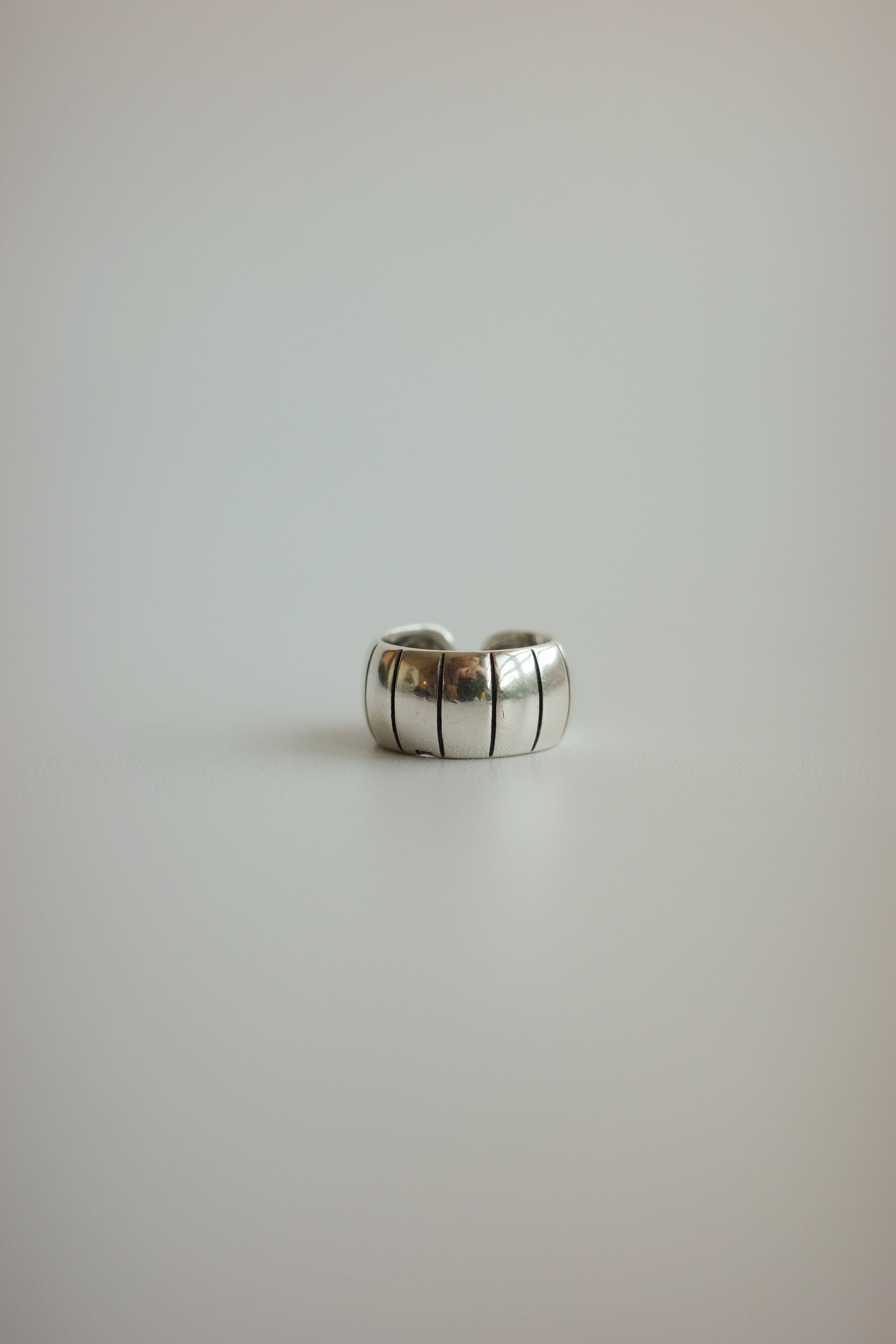 ボリュームがありながらも抜け感のあるデザインで、ひとつ着けるだけでスタイルを締めてくれる存在感のあるリングです。